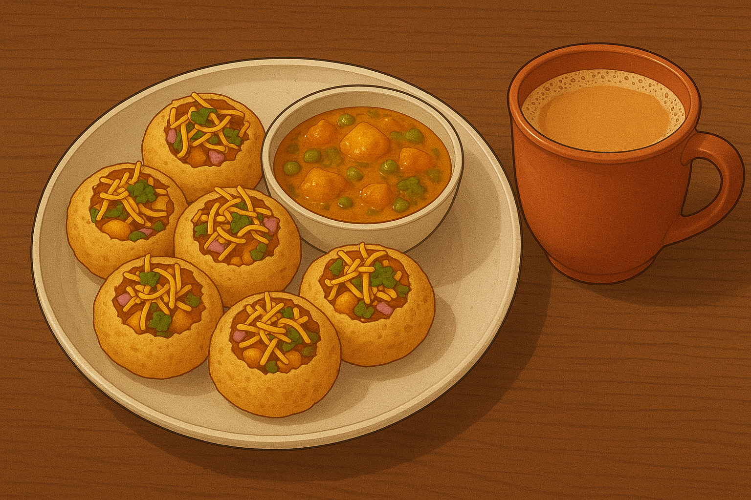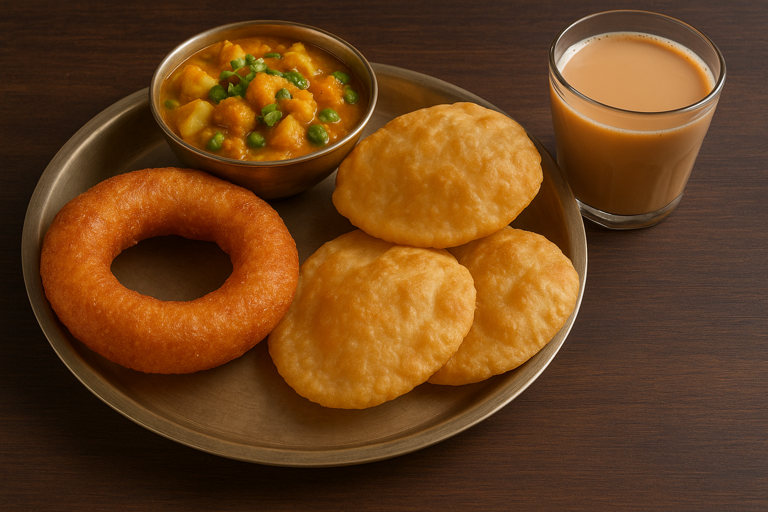 Sel-roti, puri, mix veg with hot Nepali Tea. You will get 2 sel roti, 2 puri, 1 mix veg and Nepali Milk or Black tea as requested.